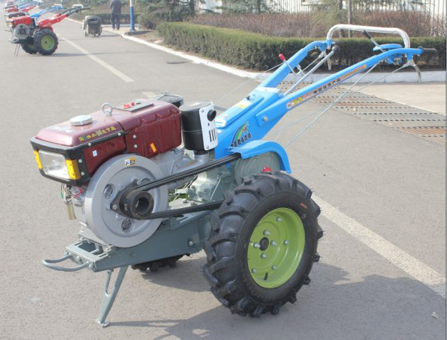 SH101-1手扶拖拉机为牵引、驱动兼用型,101型可配套动力为192、ZH192型柴油机,121型可配套动力为ZH196型柴油机,用户可根据实际需要配套动力不大于规定值得其它型号柴油机; 该机结构简单紧凑、操纵轻便灵活、重量车、使用可靠、维修方便、通过性好等优点; 广泛适用平原山区及丘陵地区水旱田作业,配上相应农机具可进行犁耕、旋耕、收割、播种、打场、抽水等多种作业; 可牵引拖车进行短途运输,配有照明设备,可在夜间行驶;该机可配电启动,免手摇。