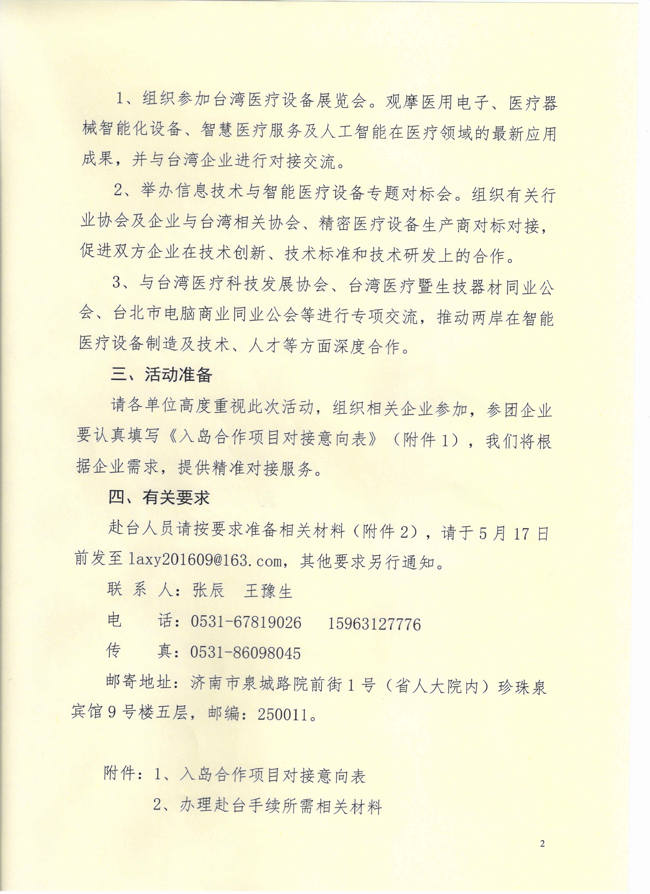 3.与台湾相关企业进行深度项目对接,推动鲁台在智能医疗设备制造及技术、人才等方面合作。