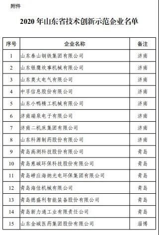 为进一步贯彻落实省委省政府新旧动能转换重大工程精神,提升企业技术创新能力,推动我省制造业高质量发展,按照工业和信息化部、财政部《技术创新示范企业认定管理办法(试行)》(工信部联科〔2010〕540号)要求,结合我省实际,经企业自愿申报,相关部门推荐及专家综合论证等程序,认定山东泰山钢铁集团有限公司等93家企业为2020年山东省技术创新示范企业(名单见附件)。