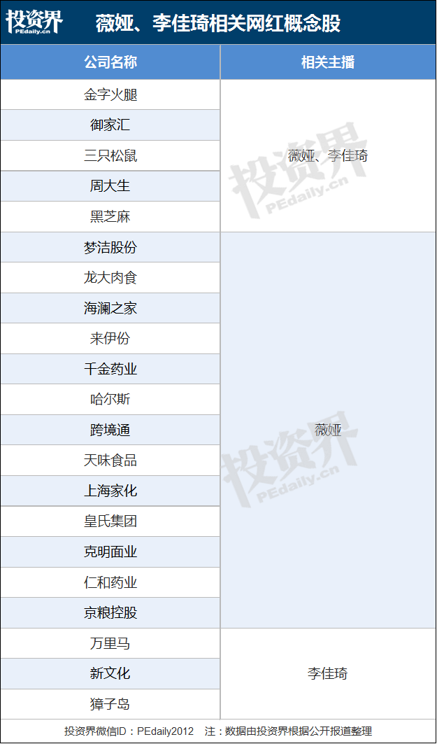 超20家上市公司绑定薇娅、李佳琦