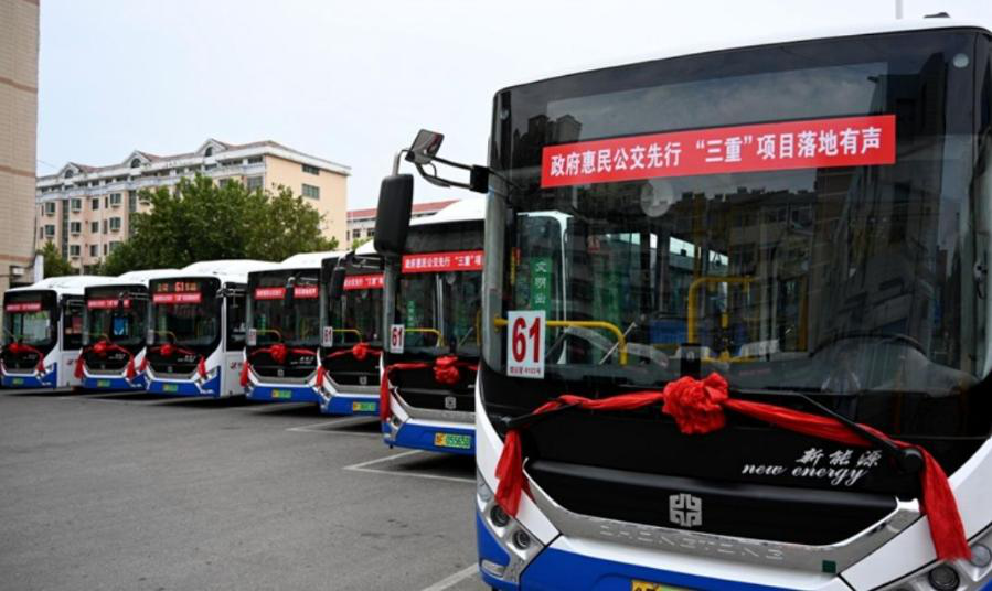 烟台市的新能源公交车。(受访者供图)