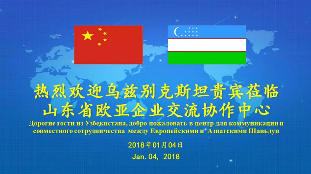 2018年1月4日,山东省欧亚企业交流协作中心(以下简称“欧亚中心”)相关负责人与乌兹别克斯坦内阁部长卡西莫夫•伊利佐特和塔什干副市长阿卜杜马季多夫•洛夫斯汉一行进行合作洽谈,双方就贸易合作、“一带一路”事业发展合作联盟平台建设等进行了深入交流。