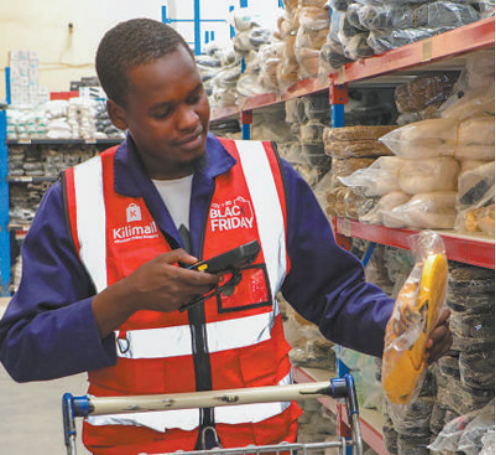 Kilimall肯尼亚员工正在仓库里分拣货物。Kilimall供图