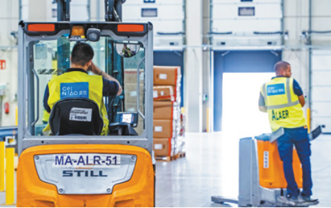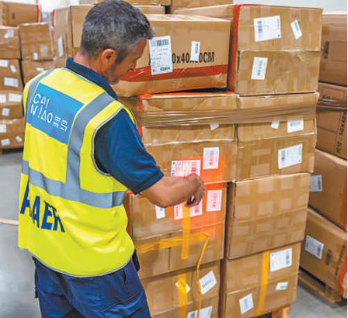 菜鸟西班牙分拨中心工作人员进行仓内操作。石晨曦摄