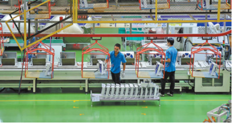 在泰国春武里府,美的空调在当地的首个智慧工厂已投入使用。在工厂车间内记者看到,一条条流水线上的元器件通过空中输送线、悬挂链、自动导引车等智能物流方式实现组装。工厂负责人蔡耀武向记者介绍:“工厂85%的物流搬运量实现自动化。在5G赋能下,生产效率提升了15%到20%。如今,这座工厂平均每10秒就能生产出一台空调,日均产能达2.8万台。”依托人工智能等前沿技术,中泰两国正不断推动传统制造业提“智”升级。