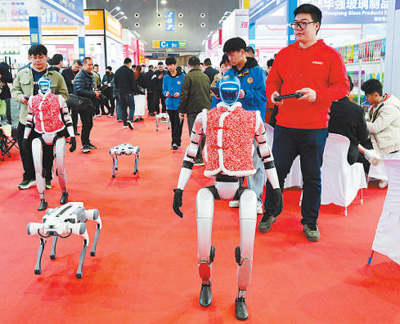 2025年3月14日,在2025中国义乌国际日用百货创新博览会上,智能机器人与现场人员互动。