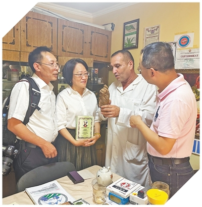 中国药学专家与塔吉克斯坦共和国传统医学中心专家交流天然药材使用情况。