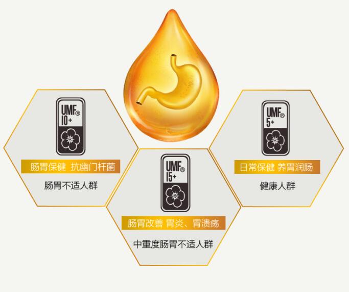 金长生新西兰麦卢卡蜂蜜主要成分都是葡萄糖和果糖,葡萄糖和果糖属于单糖,是不需要经过人体消化,就可以直接被人体吸收利用的。一方面,有胃病的人吃蜂蜜,不需要经过胃部消化,单糖可以直接为身体所吸收;另一方面,蜂蜜中所含有的各种酶类物质,可以帮助人体快速的消化吸收,促进人体的新陈代谢,减轻胃部负担;再则,新西兰的金长生麦卢卡蜂蜜中还含有抗菌消炎成分,针对病理性胃病有很好的缓解功效,比如新西兰的金长生麦卢卡蜂蜜UMF15+,不仅轻度胃肠不适人群可以服用,针对胃痛和消化不良等病症也有很好的效果。