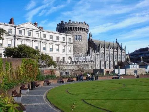 都柏林城堡,建于1204年8月30日,是英格兰的约翰王下令建造了都柏林城堡,用以盛放国王的金银珠宝。古堡大厅曾经是英国总督的官邸,现作为重要活动的场所。紧挨城堡的18世纪建筑是市政厅,市政府的所在地。是都柏林市内最古老的建筑之一,其建筑风格和规模在当时堪称欧洲之最。